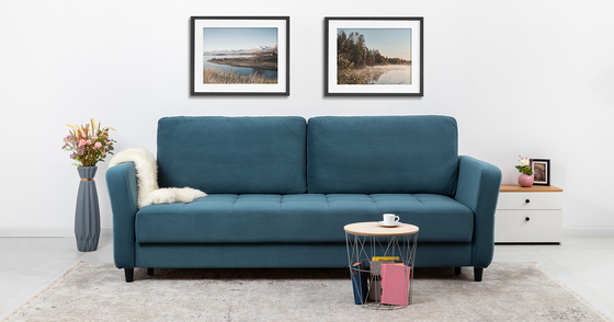 Диван-кровать прямой Дакота ТД 584 велюр Vendetta 24 синий, Riga 1598 z1 col 20 серо-голубой, Romeo 06