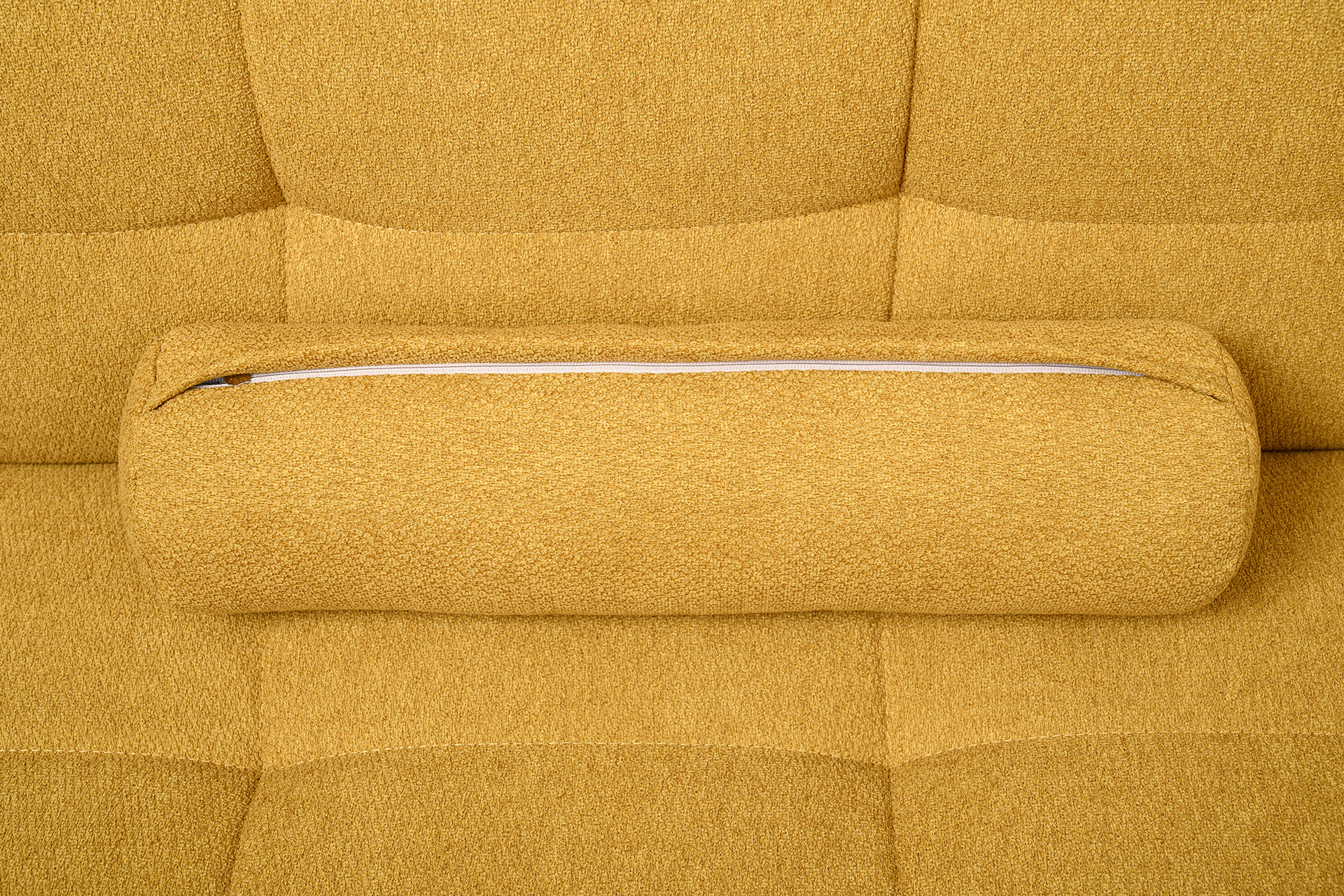 Прямоугольная стежка по спинке, посадочному месту и подлокотниках, круглые подушки-валики