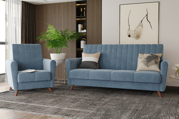 Диван-кровать прямой Эмили ТД 913 велюр синий