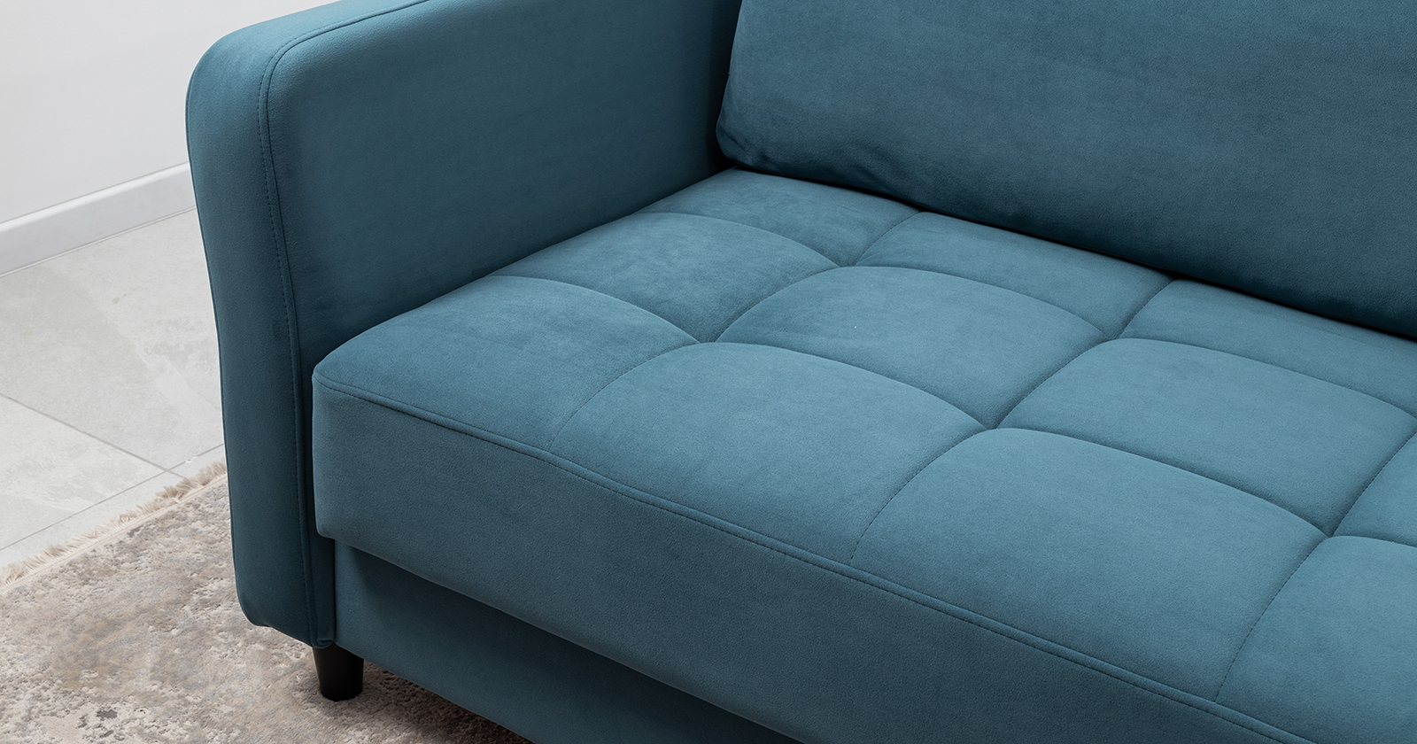Ровная отстрочка по всему периметру сидения и стежка? создающая эффект пышности выделенных форм. Подлокотники прямые с изгибом в наружные стороны, с выраженной стежкой по лицевой стороне. Стежка на посадочной части дивана.