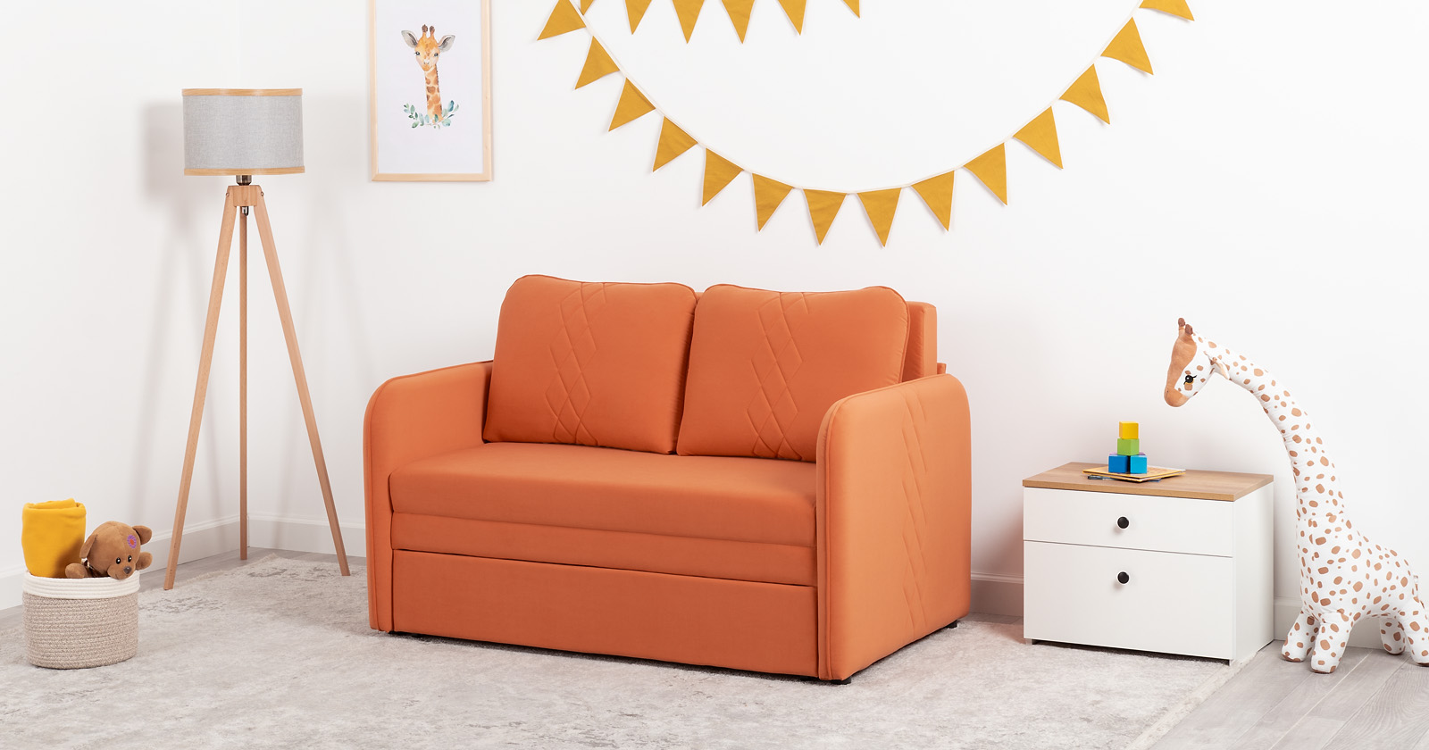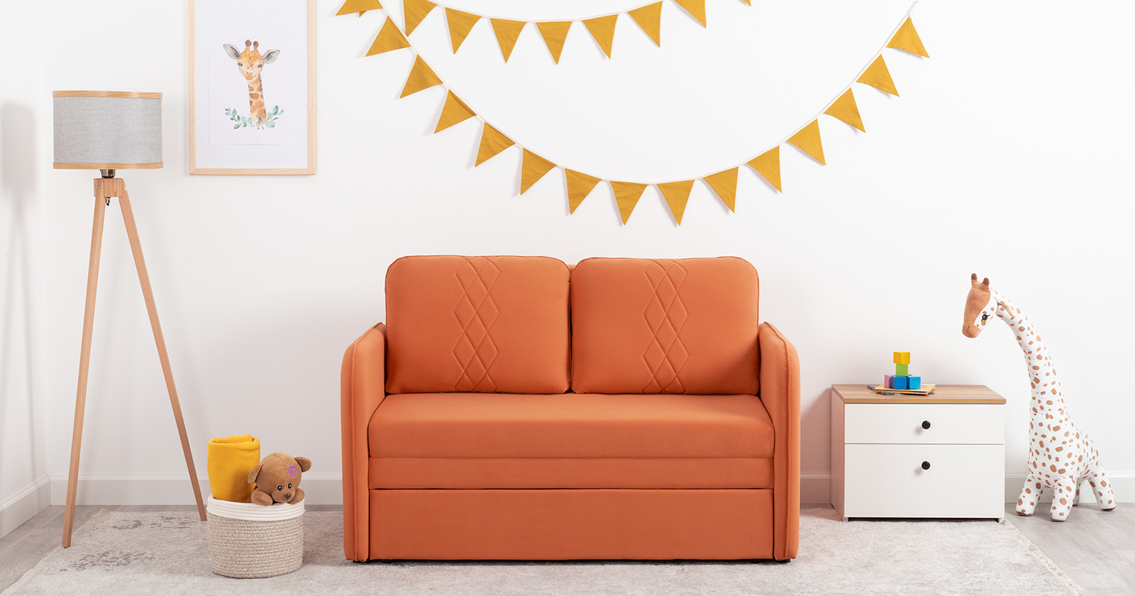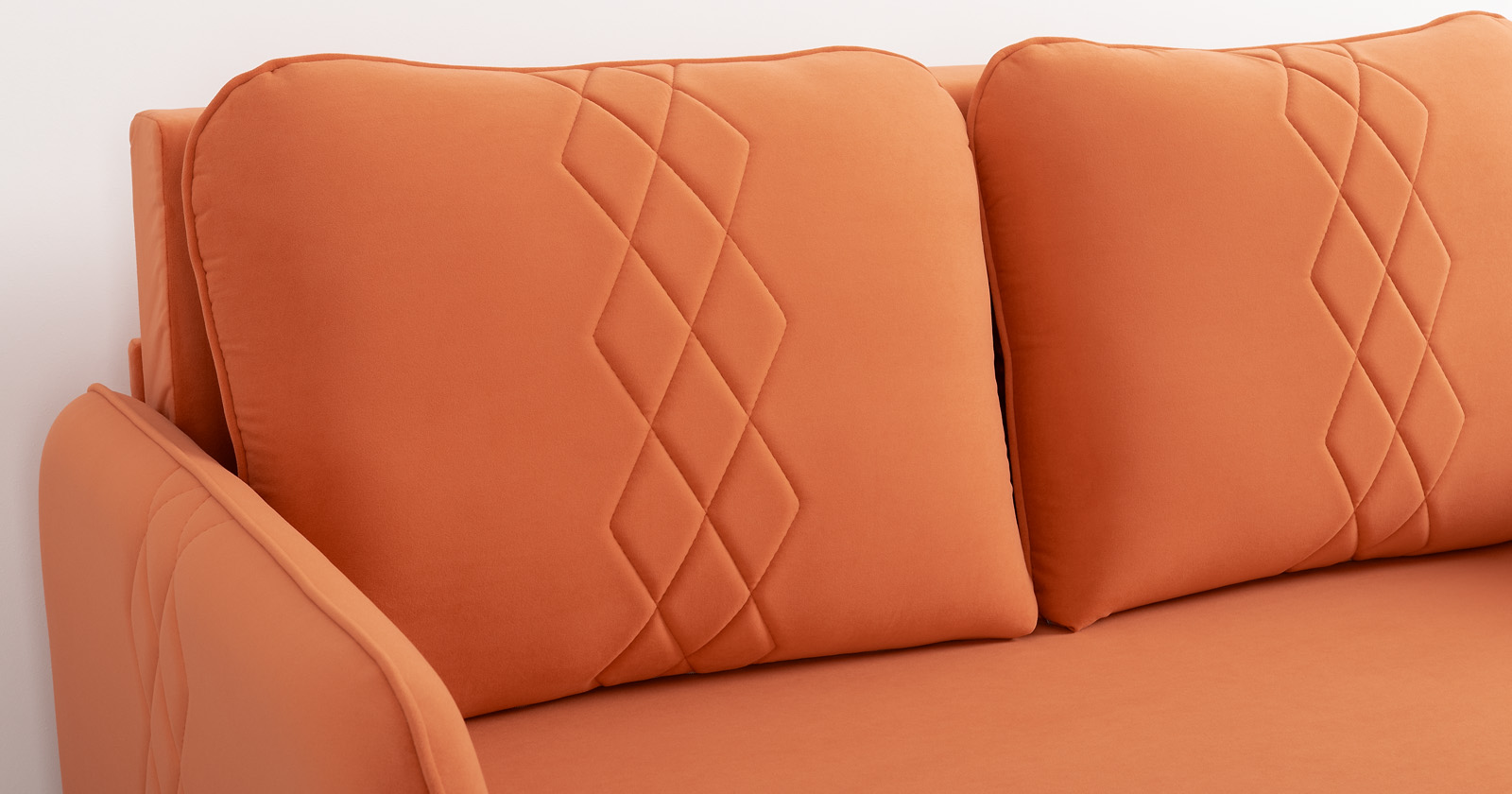 Стильный компактный диван для детской и гостиной. При своих скромных размерах он трансформируется в полноценное спальное место для детей и подростков. Лаконичный дизайн в виде декоративной стежки подчеркивает фактуру велюра, а небольшие размеры позволят разместить его в любом пространстве.
