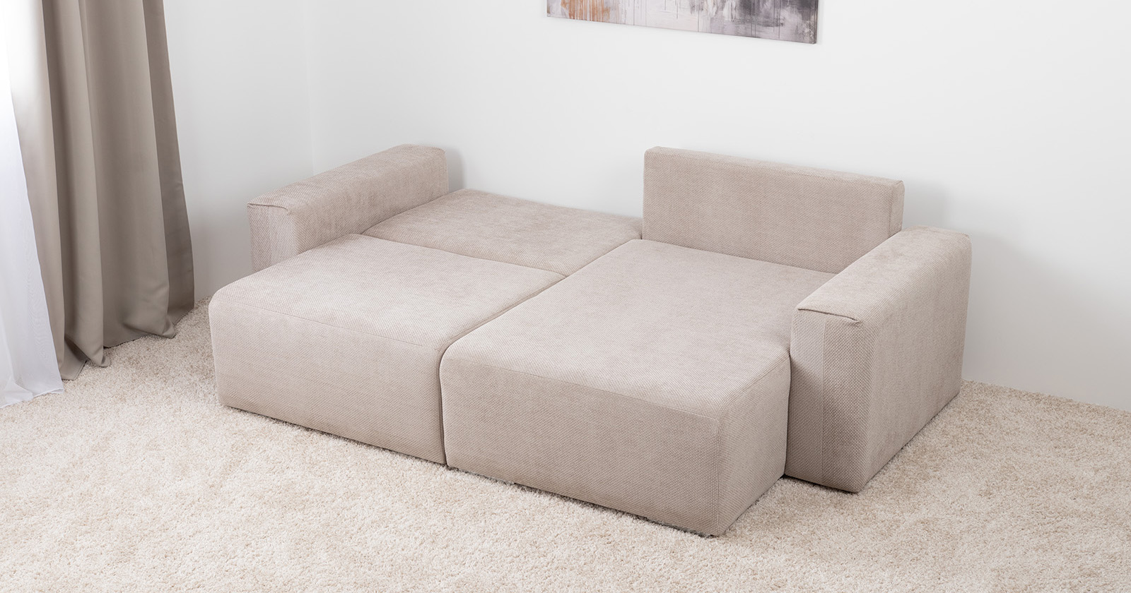 Диван-кровать угловой Тэдди 1502 композиция 2, букле Pique 006 бежевый, модульная система, сборка на любую сторону