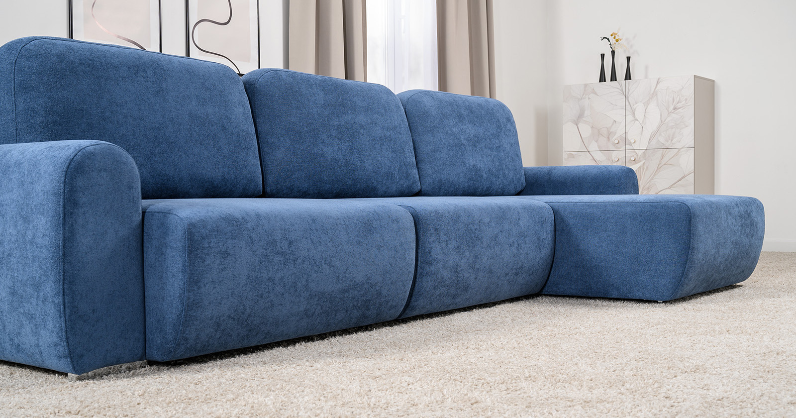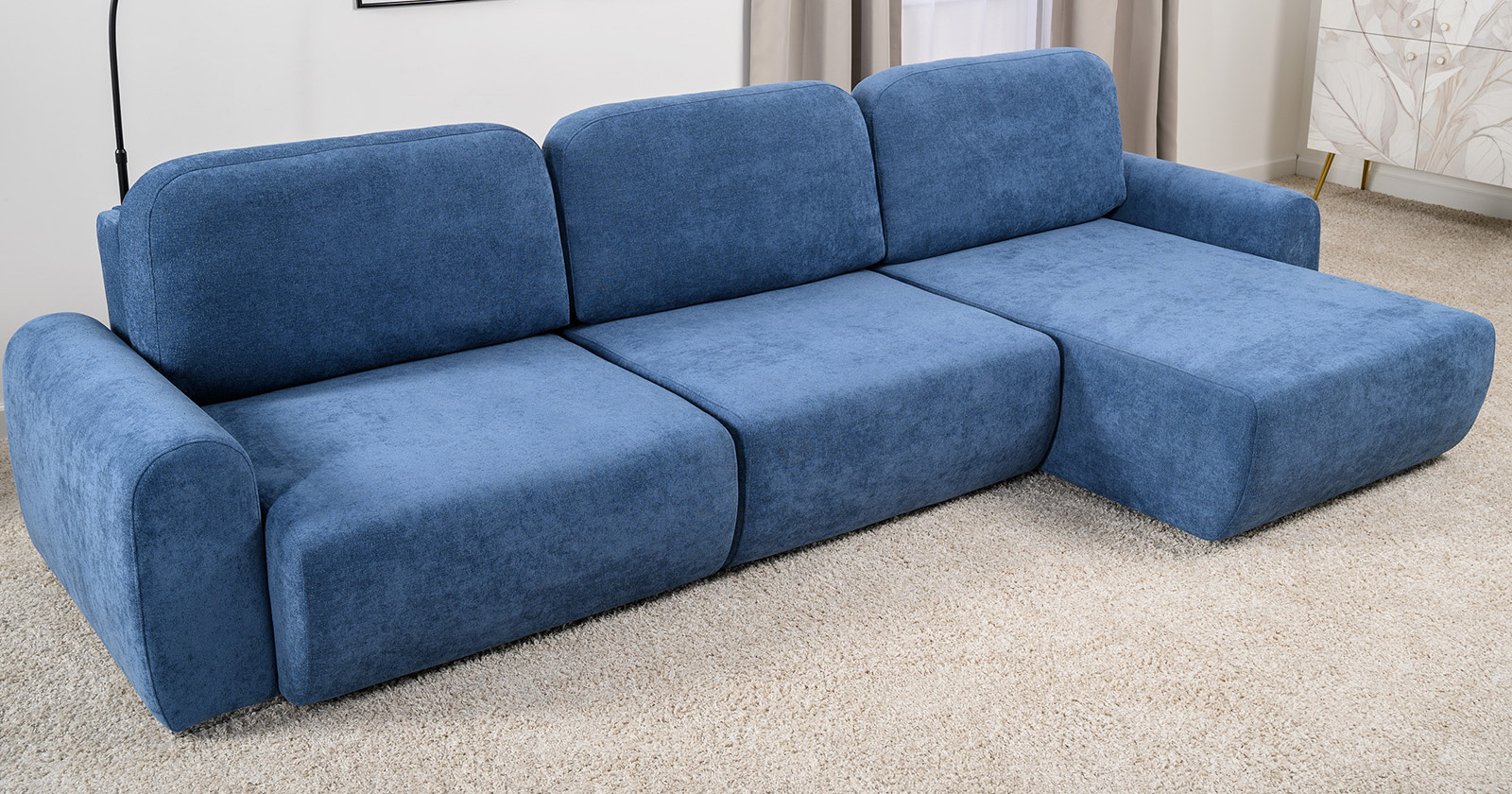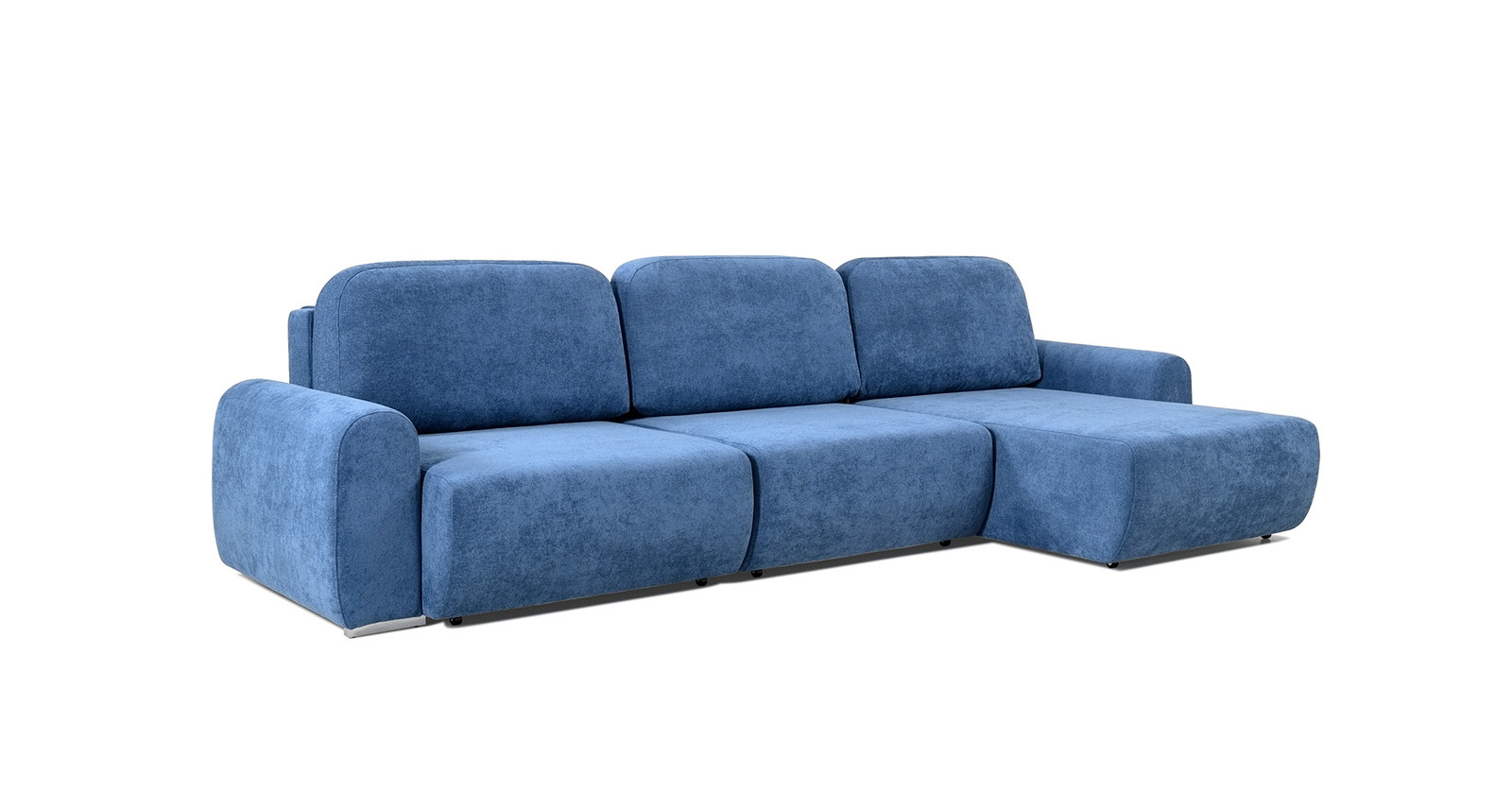 Диван-кровать угловой Тэдди 1504 композиция 2, букле Pique 009 синий, модульная система, сборка на любую сторону