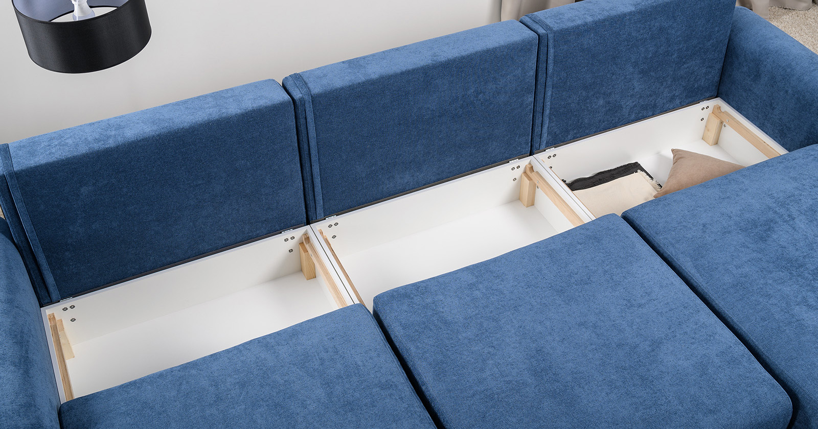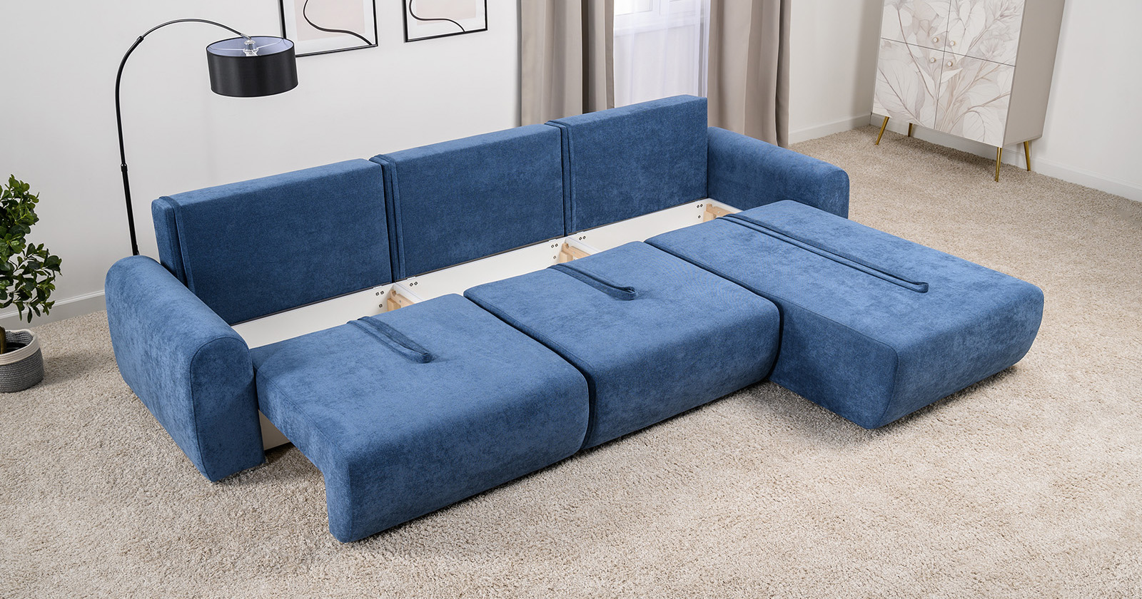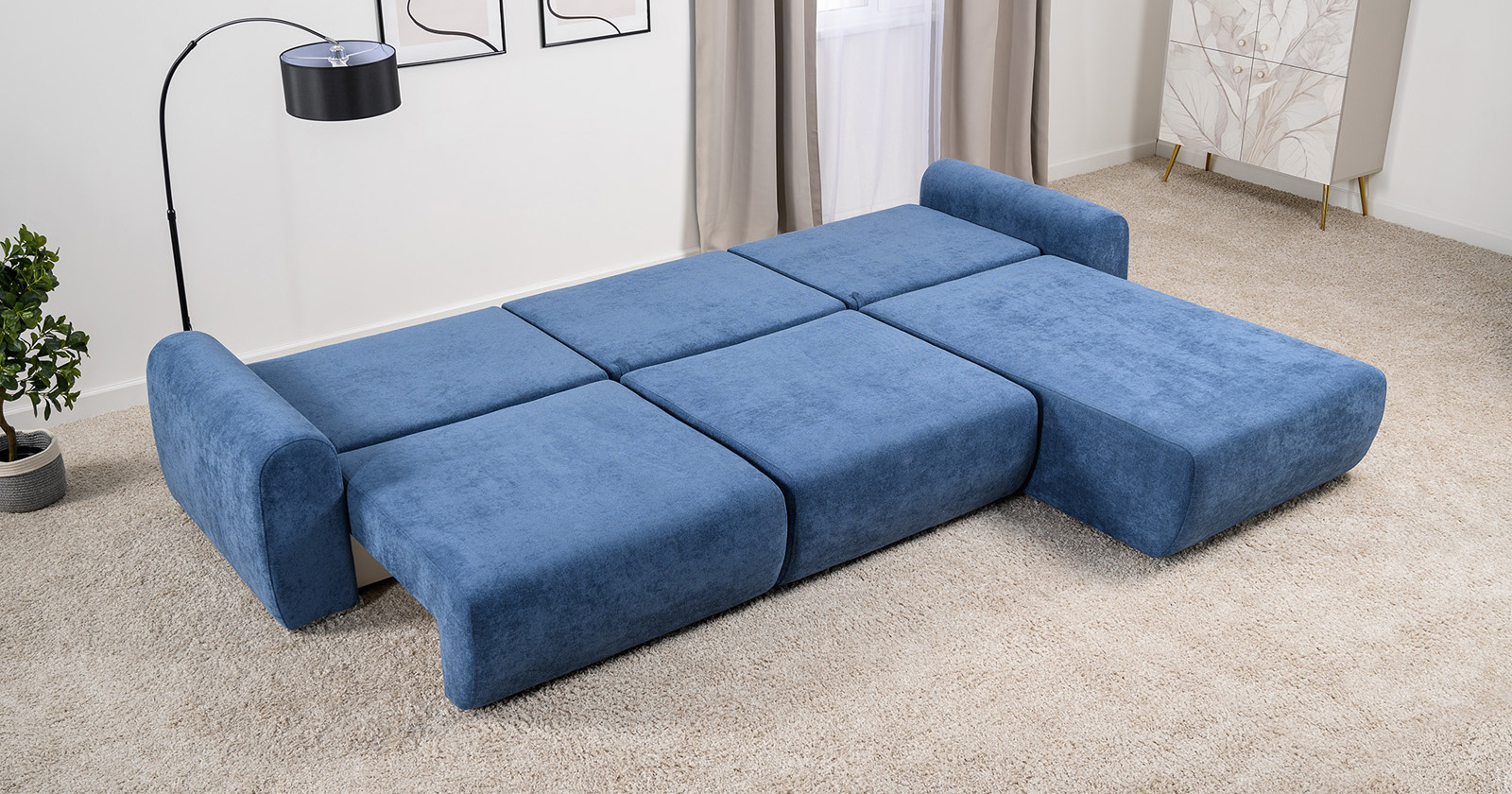 Диван-кровать угловой Тэдди 1504 композиция 2, букле Pique 009 синий, модульная система, сборка на любую сторону