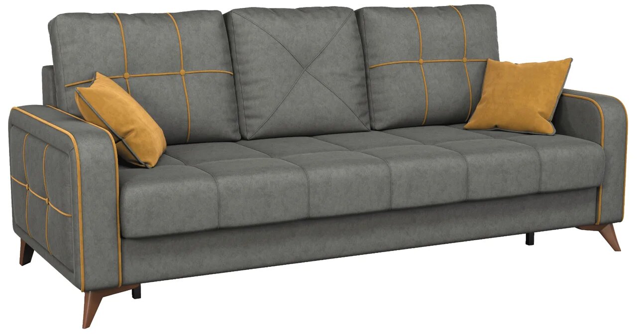 Диван прямой Черри ТД 179 искусственная замша темный кварцевый серый, горчичный