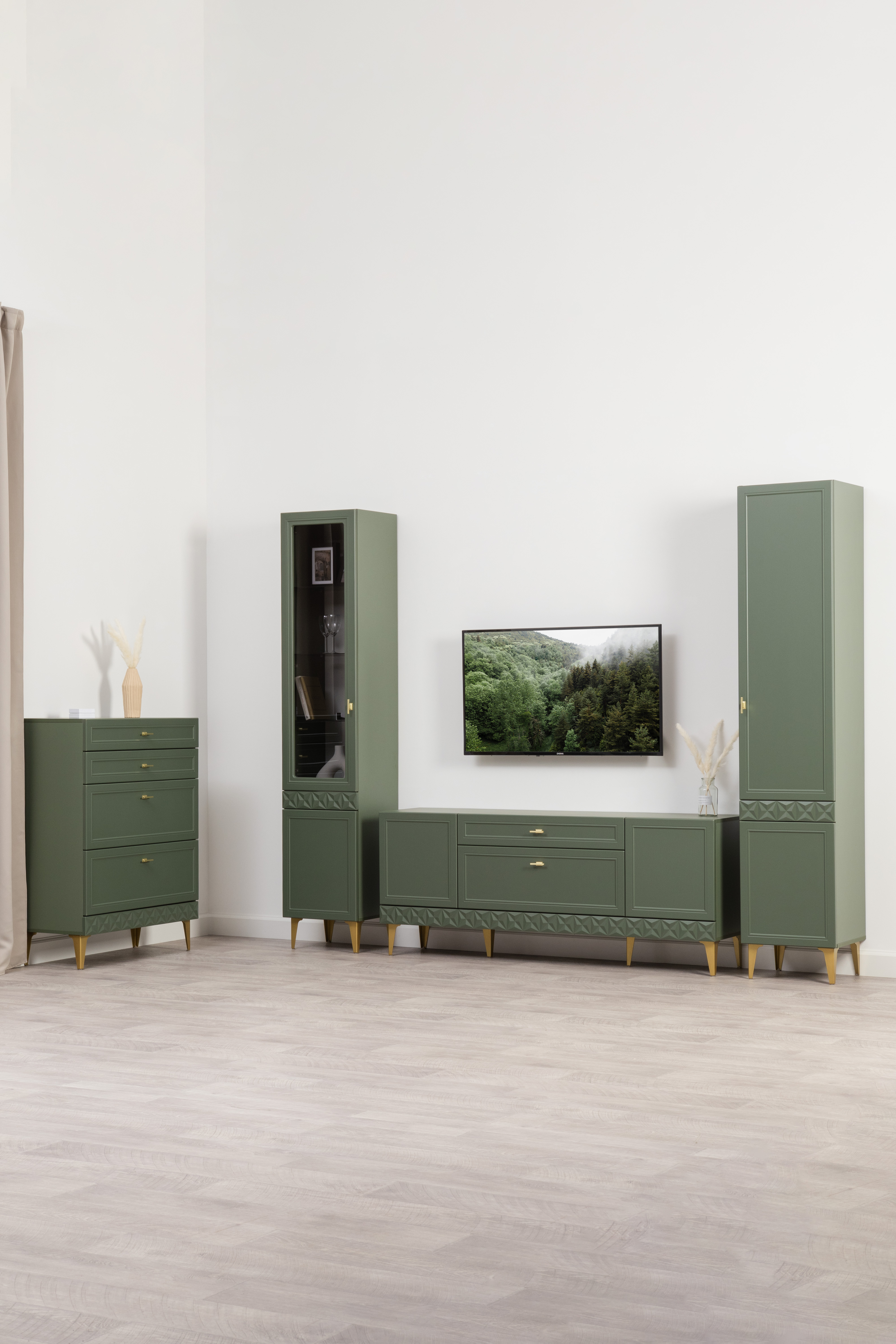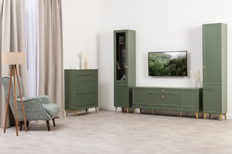 Шкаф-витрина Марион 16.397.02 дымчатый зеленый K521, олива шагрень AG 1050 ПВХ