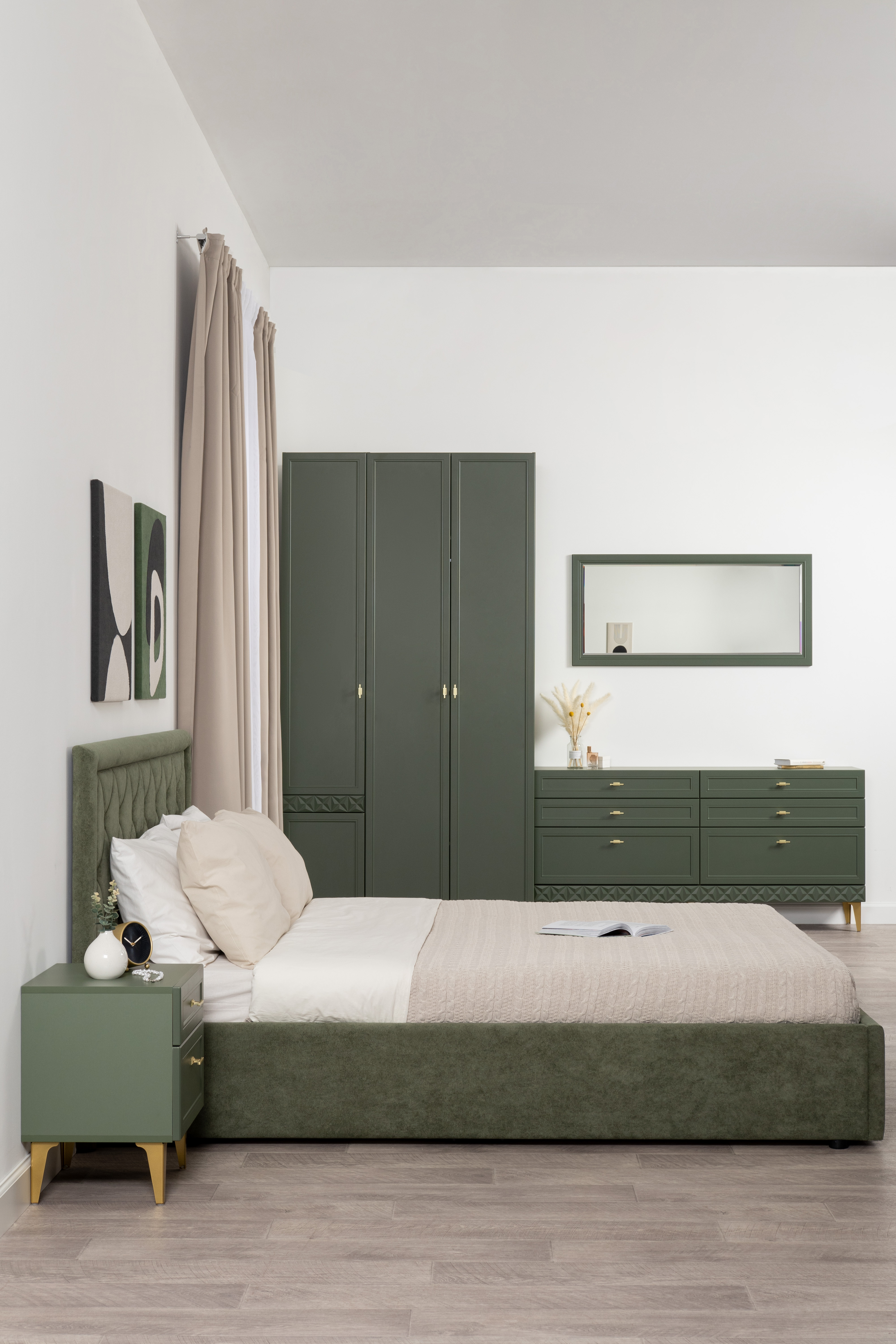 Комод Марион 16.256 дымчатый зеленый K521, олива шагрень AG 1050 ПВХ, белый PE шагрень