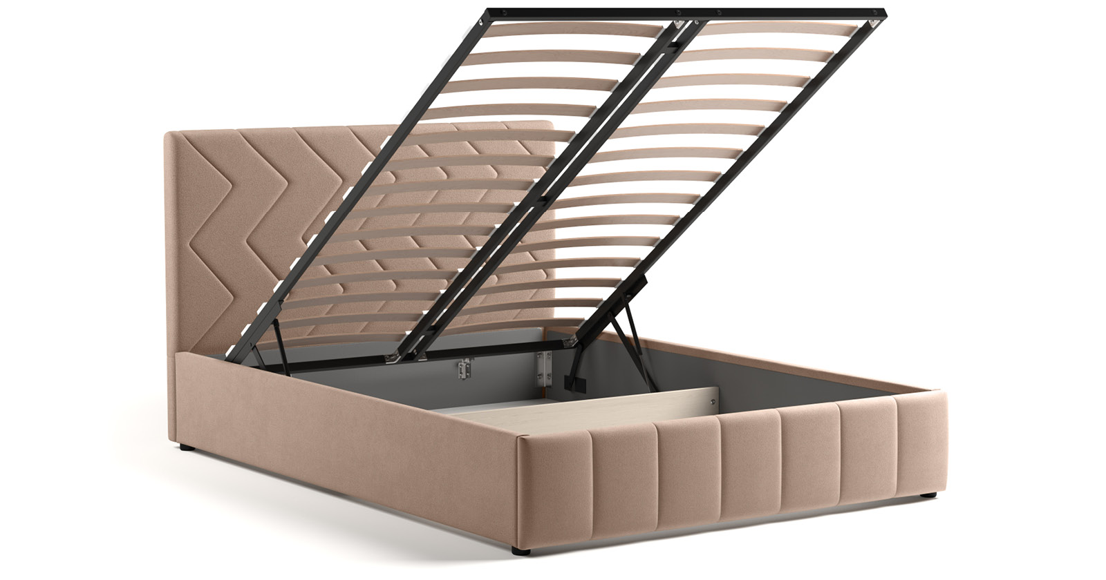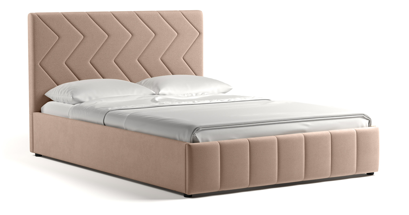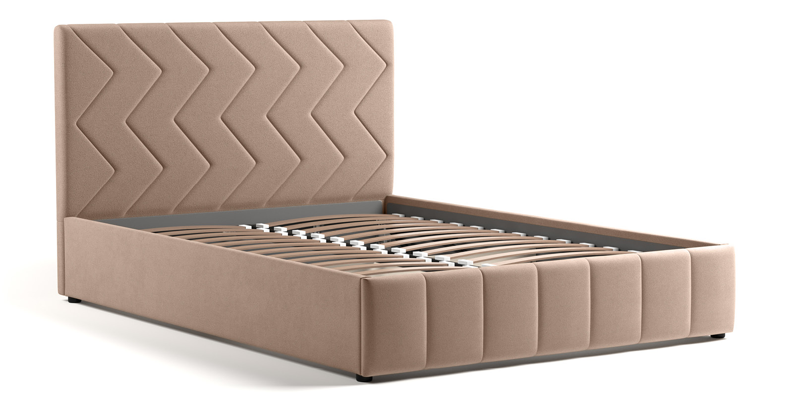 Кровать Милана 140 велюр бежевый кофейный с ортопедическим основанием и подъемным механизмом