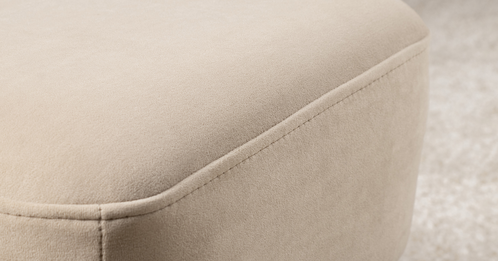Мягкие линии и визуальная легкость — отличительные черты пуфа Дакота. Гармонично дополнит диван и кресло из этой коллекции.