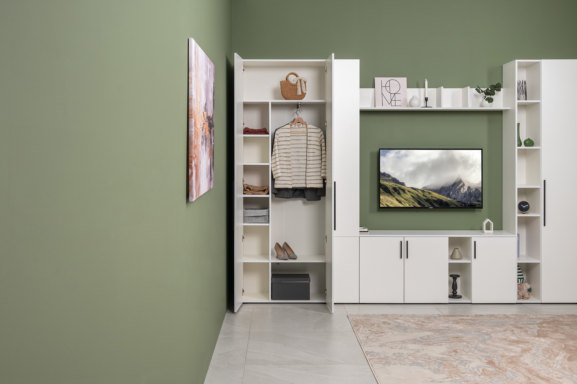 Шкаф для одежды Джастин 13.339 белый PE шагрень, дуб белый exclusive OW D4430