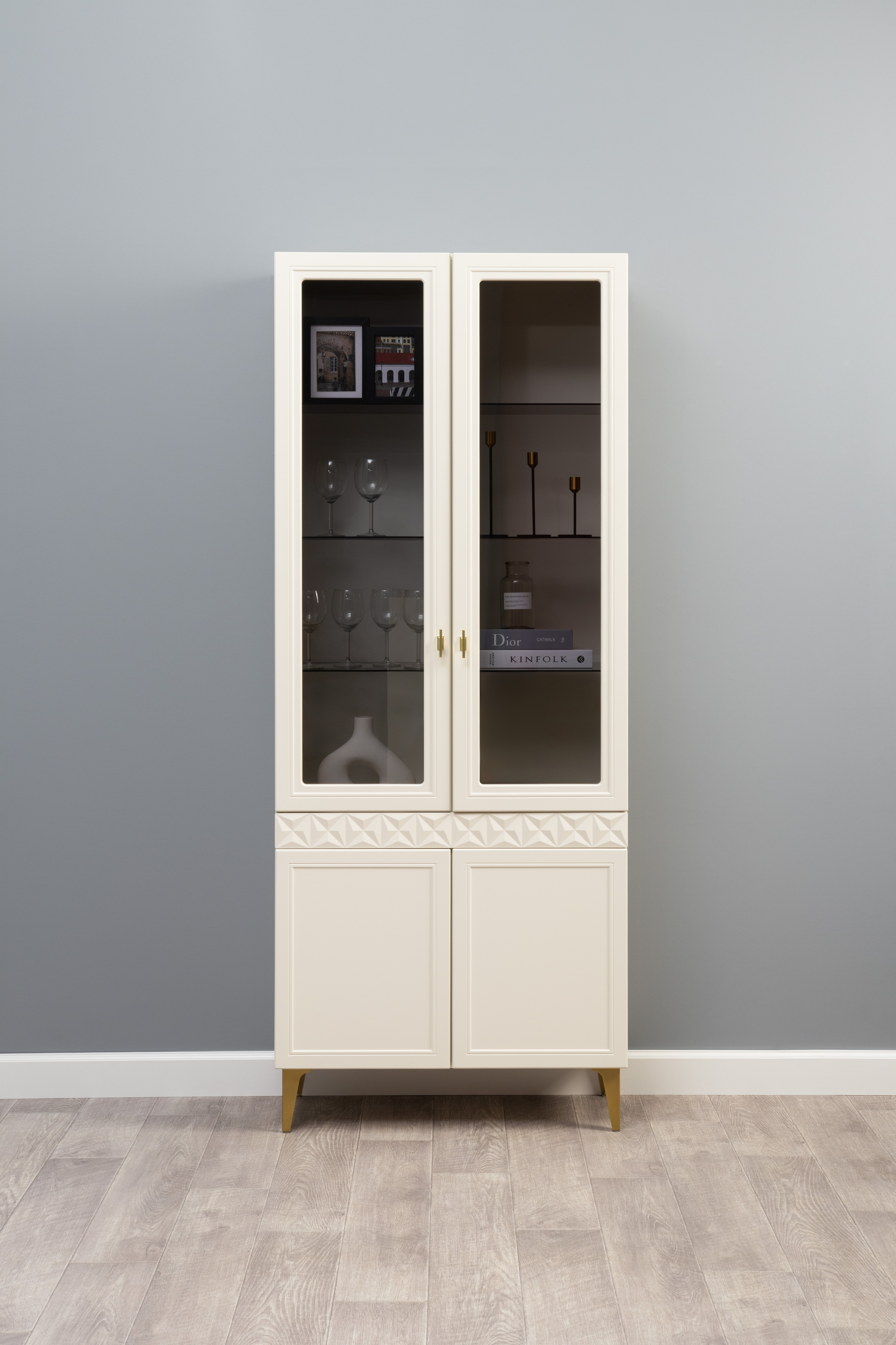 В коллекции представлены три типа витрин с тонированным закалённым стеклом, которые придают пространству лёгкость и свет. «Марион» — идеальное сочетание традиций и актуального дизайна в каждой детали.