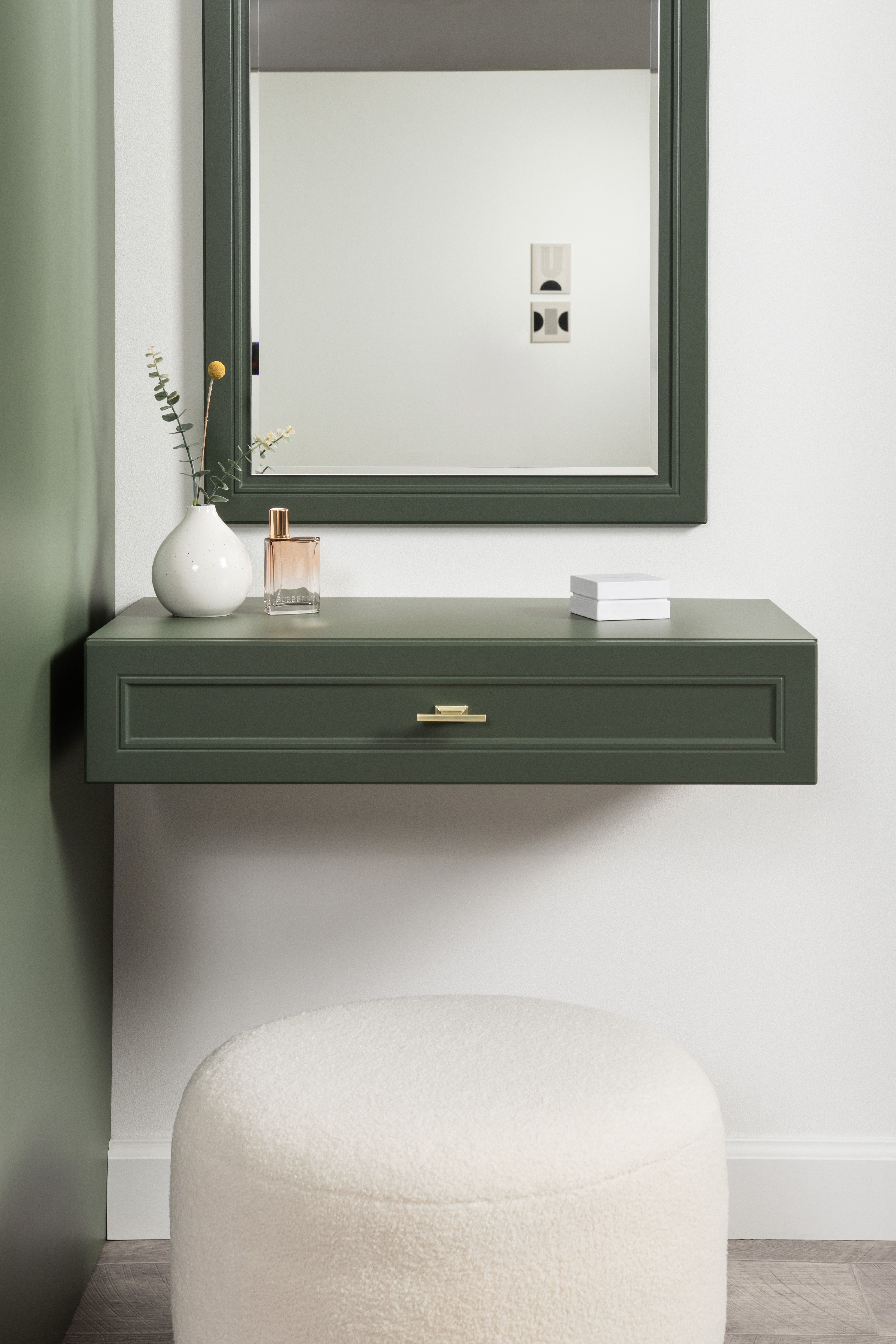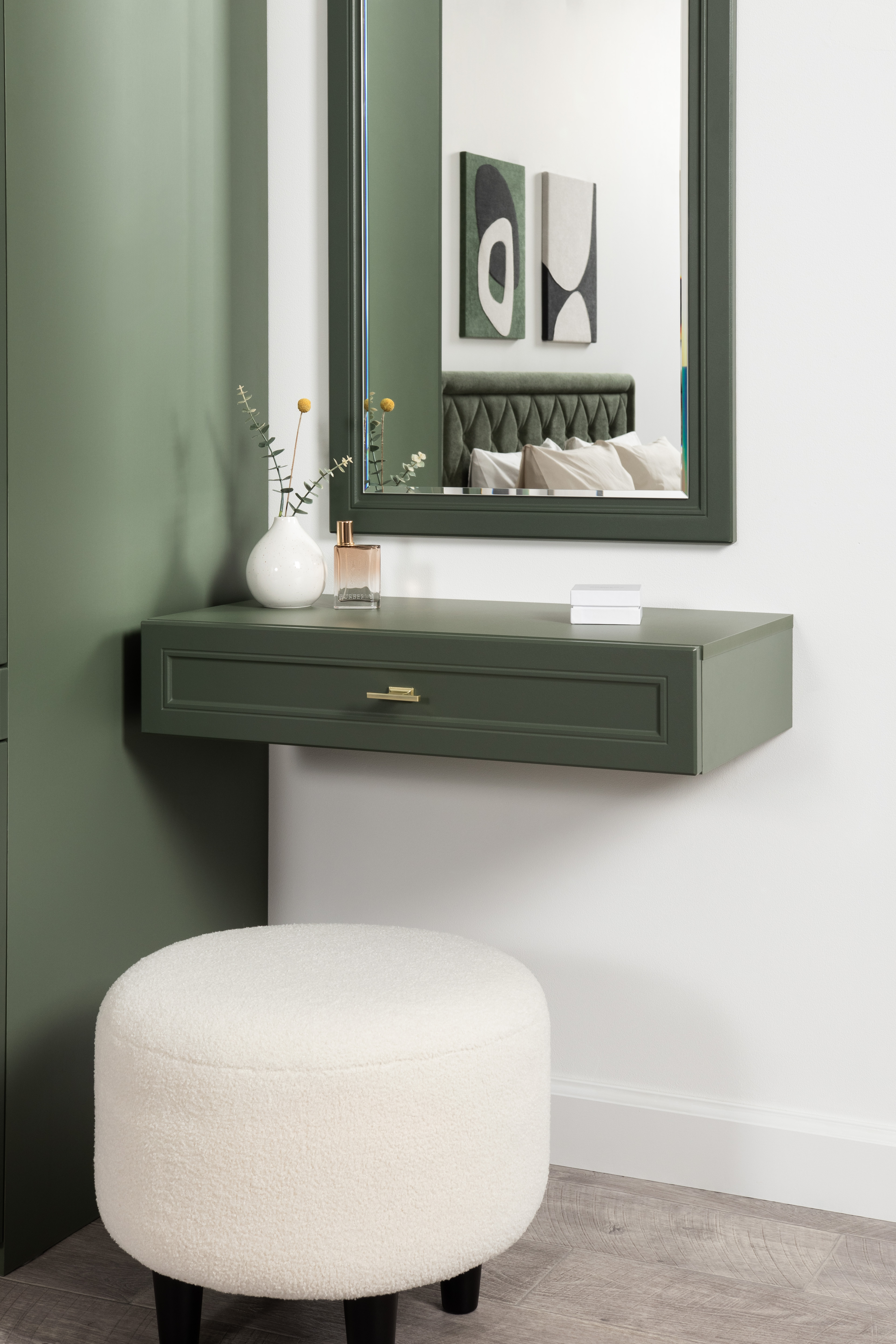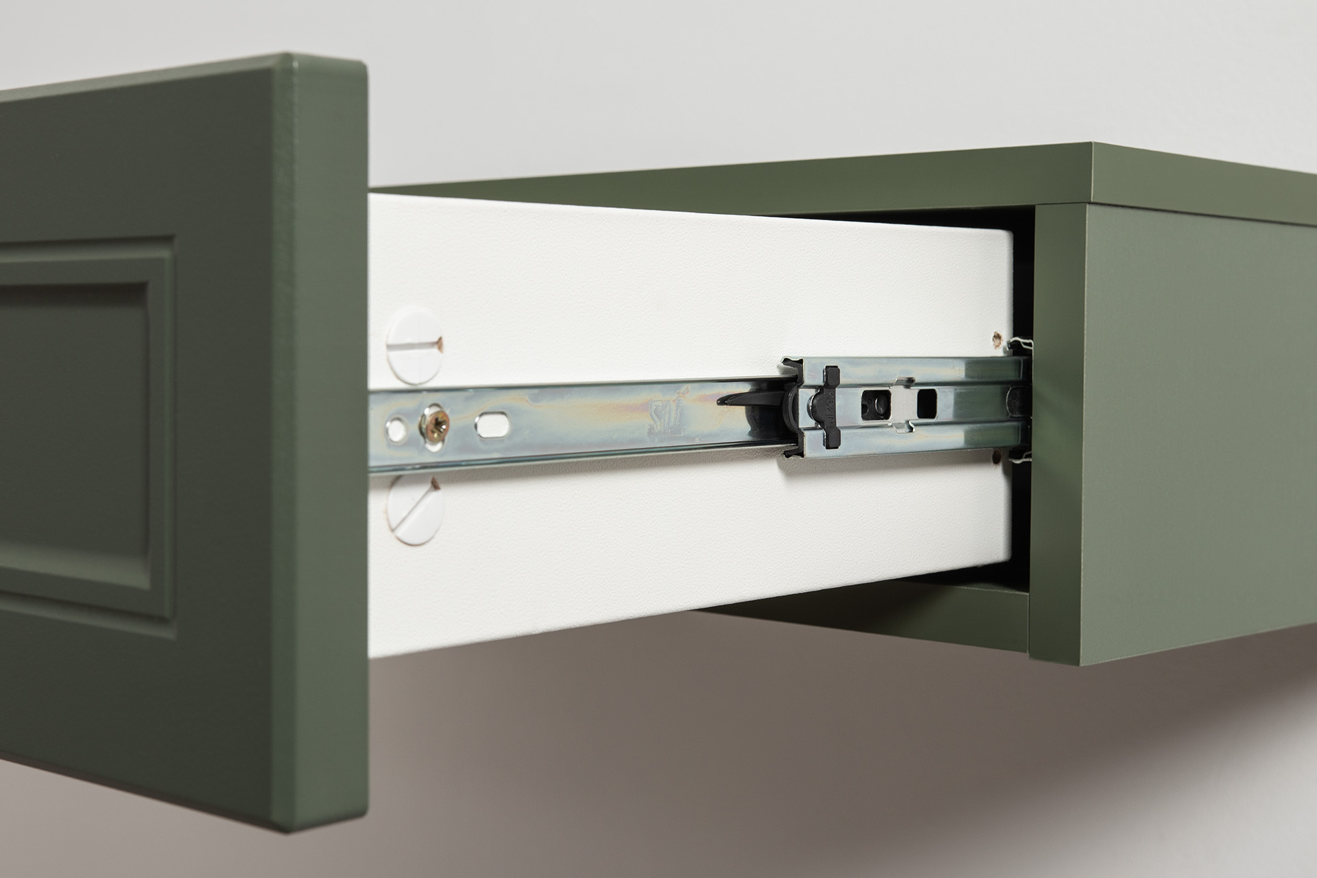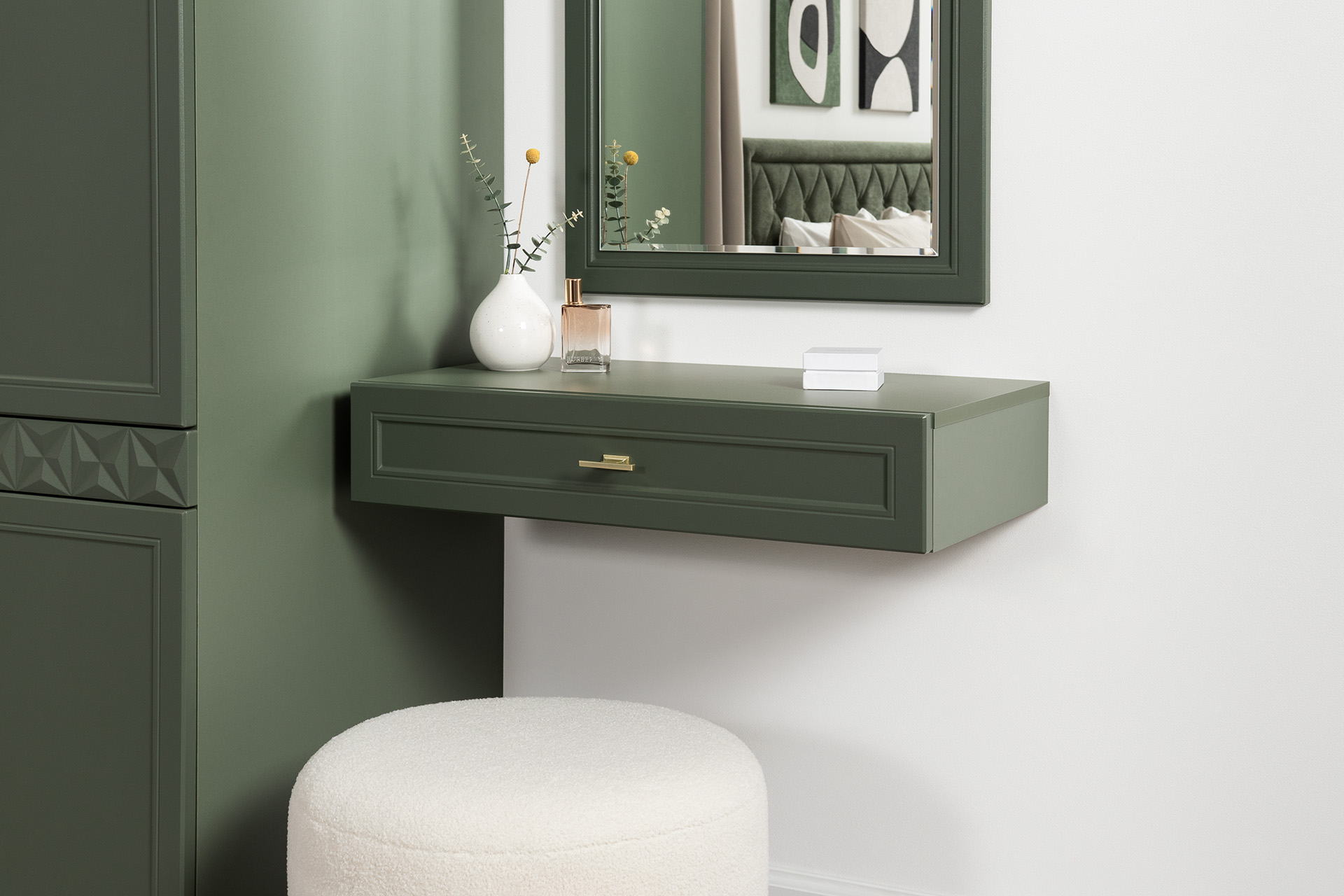 Тумба прикроватная Марион 16.14 дымчатый зеленый K521, олива шагрень AG 1050 ПВХ, белый PE шагрень